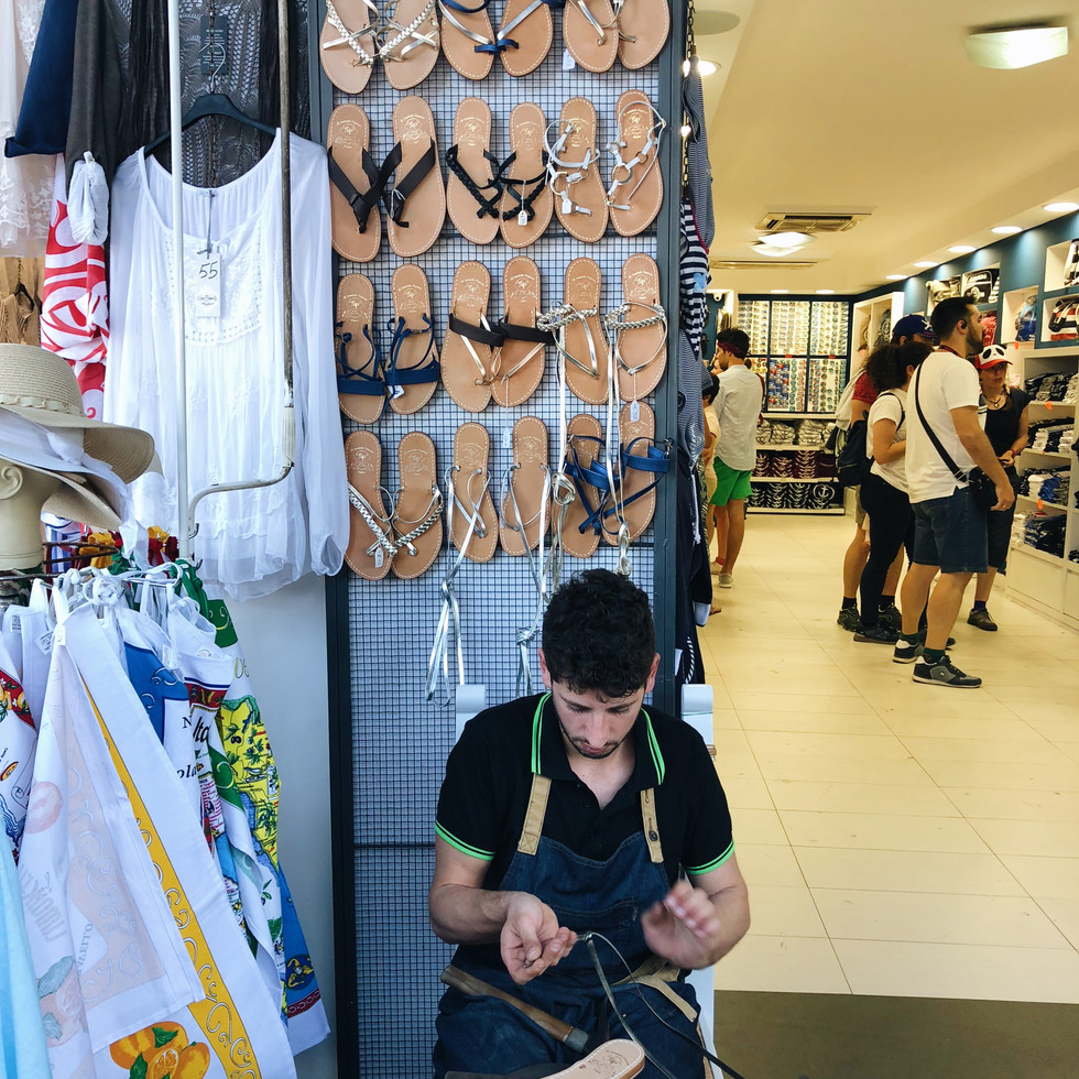 The art of making shoes also comes with small sacrifices, like the daily journey from home to work. Riccardo lives in Naples, and wakes up early every morning to go to Capri. One bus ride and hour long ferryboat ride later, he has made it. He does this every day except for Tuesdays, so make sure to plan accordingly. He doesn't mind working a bit far from work, because at least he gets to gift tourists with shoes that hold all the love his heart has for shoes.
